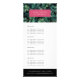 Elegant rack card design displays your services, price list or business information beneath a border of lush green botanical jungle foliage. Personalize with your business name in modern white lettering on a band of contrasting bright pink. Includes four customizable headings and body text fields, and space for your business contact information along the bottom. To adjust layout, enter your text and then use the Customize function to change positioning and font sizes.