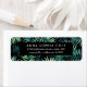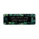 Tropical chic return address labels feature your name or business name and return address in modern white lettering on a black rectangle, set on a background of vibrant green jungle botanical leaves.