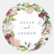 These tropical breeze wreath wedding envelope seals are perfect for an elegant spring or summer wedding. The floral design features red, burgundy, blush pink and white flowers on a wreath of watercolor tropical greenery with a relaxed Hawaiian feel. Personalize the label with the names of the bride and groom.