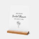 Elegant tropical bridal shower acrylic sign, with a palm trees and black script typography design. With customizable lettering, you add your own information, Great for planning a beach inspired pre-wedding celebration.