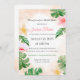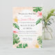 Tropical leaves and flowers watercolor bridal shower invitation. Festive and colourful for a summer brunch or luncheon.