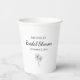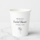 Simple tropical bridal shower paper cup, with an elegant palm trees drawing and black script typography design. With customizable text, you add your own information. A fun way to add a touch of the beach to your party supplies.