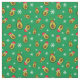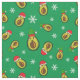Happy Christmas in July! Dark green fabric patterned with white snowflakes and cute avocados wearing santa and elf hats. Perfect for making your summer beach bbq outfit or decorations