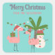 Tropical Christmas Pink Flamingos on Teal Square Sticker