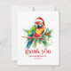 This festive tropical Christmas-themed design features- thank you -beautiful red retro typography with a tropical Christmas bird in Santa hat.
