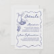 Let your guests know your pertinent wedding information with this hand drawn Details enclosure card featuring a tropical coconut cocktail and pineapple doodles inside a wavy squiggle border. The text is in a casual script style and can be customized to share your wedding details such as reception, accommodations and wedding website. On the reverse side is a couple's crest illustration with a sea shell that you can customize with each of your initials to add an extra personal touch. The colours are nautical navy blue on an off-white background and are perfect for beach and coastal themed weddings.