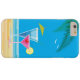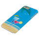 An illustration of a tropical cocktails in bright pink and blue on a beach background accented with palm leaves and seagulls, decorate this iPhone 6/6s Plus Case, reminding us of warm sunny vacations.