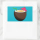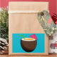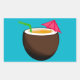 A tropical drink in a coconut cup with an umbrella. A delicious pina colada perhaps?