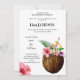 Get your guests in the mood to party with this tropical Hawaiian floral & Coconut graduation invitation. Hibiscus florals. with photo