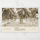 Our personalized mini bottle labels design feature a coconut palm tree farm image in sepia brown, for an old world and traditional feel combined with simple and modern custom text, perfect for your Coquito bottles, a traditional Puerto Rican coconut drink for Christmas and the holidays!
