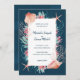 Nautical, "Under the Sea" theme wedding invitation features a watercolor coral reef and seashells (starfish, conch and scallop shells) in shades of aqua blue, mint, coral, and pink on a deep navy blue background. Coordinates with my "Tropical Reef" collection and is perfect for beach, ocean, nautical, coastal and destination wedding themes. Original artwork KL Stock