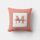 Tropical Coral & White Leaves Patterned Monogram Throw Pillow