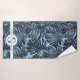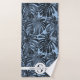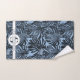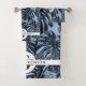 Tropical Dark Blue Palm Leaves Monogram Name Bath Towel Set
