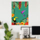 A vivid scene showcasing tropical flowers and plants. A toucan with its striking beak, perches gracefully among the foliage, while a hummingbird flits through the air with its iridescent wings. The artwork is burst with colour and is a reminder of our beautiful nature.
