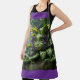 Purple And Yellow Tropical Design Apron with A Plant That Has Beautiful Large Eyes,From A collection Called The Planty Tribe.