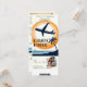 A trendy design of an airplane ticket wedding invitation with a tropical destination theme (Hawaii etc.) featuring a modern illustration of an airplane taking off over blue waves and a palm tree, with the glowing sun in the background,, will delight couple and guests, looking forward to the big day. Template for a picture of the happy couple. An all in one modern wedding invitation that includes the details on the back and the RSVP card with a QR code.