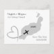 Stylish destination wedding save the date postcard for couples getting married in Lanzarote. With a silver gray silhouette map, air plane and sweeping heart. Very cool and easy to customize with your personal details.