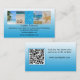 Business card featuring a range of tropical beach themed photos on a white and turquoise blue background. On the back is space for your own photo or a QR code. Great for a travel agent or travel blogger, and customizable for any other purpose.