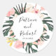 An elegant tropical palm leaves, floral wedding sticker, easy to personalize with your details. CUSTOMIZATION: If you need design customization, please get in touch with me via chat; if you need information about your order, shipping options, etc., please contact Zazzle directly https://help.zazzle.com/hc/en-us/articles/221463567-How-Do-I-Contact-Zazzle-Customer-Support-.