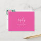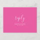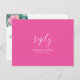 This postcard thoughtfully includes space for guests to confirm their attendance and specify their meal choices. The reverse side is adorned with a solid pink background, providing a customizable area for the couple's names and wedding date, elegantly surrounded by "reply" in stylish calligraphy script.