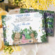 Whimsical thank you card featuring illustration of rustic watercolor greens, foliages and adorable dinosaurs