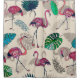 Tropical leaves and flamingo paint a vibrant nature-themed scene.