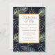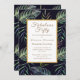 Elegant watercolor green tropical leaf pattern on black with gold frame fifty and fabulous, 50th birthday party invitation