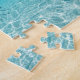 This game puzzle is shown with a photo print of a beautiful tropical beach and fish scene.