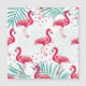 Colourful flamingo and leafs dance in rhythm. Summer's tropical embrace.