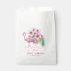 Wrap up your celebration with these tropical flamingo baby shower favour bags! Adorned with a sweet watercolor flamingo, bright hibiscus blooms, and palm leaves, these paper treat bags are a charming way to say thank you to your guests. Personalize with the honoree's name and shower date for a cohesive, festive touch.