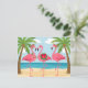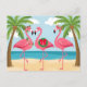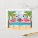 Forget the snow—send a warm "Mele Kalikimaka" with this fun, tropical holiday design! Three pink flamingos gather on a sandy beach with palm trees and a bright blue ocean backdrop. One flamingo wears a Christmas wreath with a big red bow, while the others sport festive floral and holly leis. Perfect for sending warm wishes from the beach, destination Christmas greetings, or for anyone who loves a Florida, Hawaii, or warm-weather holiday theme.