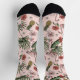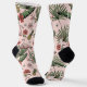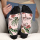 These colourful tropical pink flamingo socks feature a floral pattern of hand-drawn pink flamingos, hibiscus and jasmine flowers, pineapples, banana leaves and tropical drinks, all against an elegant blush pink background.