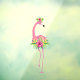 A beautiful watercolor illustration of a single pink flamingo standing looking at you side on. She has tropical jungle flowers on her head and is wearing a skirt made of hibiscus flowers and tropical leaves. These are ideal for baby shower; Hawaiian theme birthday party celebrations and nursery decorations.