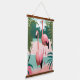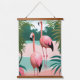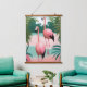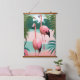 A serene scene of two pink flamingos standing by a lush tropical shoreline, surrounded by vibrant green foliage and soft pastel tones. Perfect for adding a touch of exotic beauty to any space.