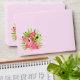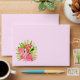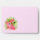 Vibrant watercolor illustration of two flamingos against a green palm tree leaf and electric blue backdrop features on this attractive envelope. For matching items and custom edits contact designer LeahG.