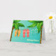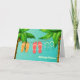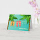 A fun birthday card design with flip flops on clothesline hanging between two palm trees on blue background. Coordinating items available. Some graphics by freepik.com