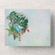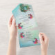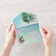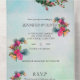 Parrot's comes to life hidden behind monstera leaves peeking through the lush steamy flowering foliage all in one wedding invite