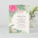 Invite your guests to paradise for a day with this retro tropical design. Featuring tropical leaves and flowers in pinks, oranges, and greens and a stylized rattan pattern on the back, this design brings to mind a fun, sunny tiki party or luau. Perfect for your casual beach affair, wild pool party, or destination celebration in the tropics. Shop the collection today for matching stationery, and say "Aloha" to the perfect day!
