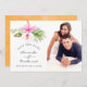 Watercolor beach wedding save the date cards featuring orange hibiscus designed to be quickly and easily customized to your event specifics.