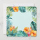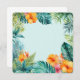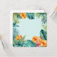 Vibrant tropical frame featuring lush green leaves and bright orange, pink, and yellow flowers. The soft blue background in the centre provides a perfect space for adding custom text or imagery. This design is ideal for summer themes, tropical parties, or playful creative projects.