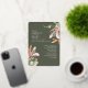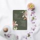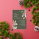 Featuring a modern design with tropical greenery and flowers in muted colours and a touch of rose gold over a dark green background combined with an elegant calligraphy typography, for a chic look. On the back the invitation is finished with a template for your wedding details and RSVP QR code.