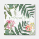 Tropical flowers, fronds and leaves framing your personalized text.