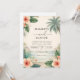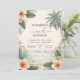 Embrace a destination vibe with this serene tropical design. Lush palm fronds and vibrant floral accents evoke an exotic escape. The soft palette creates a romantic and tranquil atmosphere for your special day.