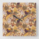 Tropical Floral Pattern With Tiger Square Wall Clock