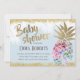 Tropical Floral Pineapple Gold Glitter Baby Shower Invitation