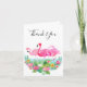 Watercolor pink flamingos with tropical island flowers and foliage thank you card.
