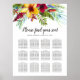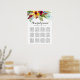 Summer beach destination wedding table plan featuring a classic white background that can be changed to any colour, watercolor tropical flowers, palm leaves, and a modern wedding seating chart template of 12 tables.