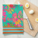 Tropical Florals Teal, Orange, Yellow with Trim Kitchen Towel