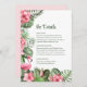 Complete the tropical paradise aesthetic of your wedding ensemble with our Tropical Flowers and Flamingo Wedding Details Card. This beautifully crafted card features a vibrant design with hand-painted watercolor tropical flowers, including palm leaves, monstera, hibiscus, and Hawaiian lilies, accompanied by two graceful flamingos. The elegant font adds a touch of sophistication to convey all the essential wedding details to your guests, ensuring they are fully informed and excited for your special day. Perfect for couples seeking to infuse their wedding with exotic charm and romantic allure.