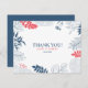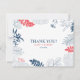 Tropical flowers and leaves frame in dark-blue white and coral-red on a white background. Customizable thank you text.